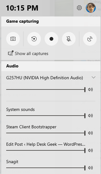 Finally, if you’d like to record the audio from the application you are currently using, but don’t want to record audio from any apps in the background, **press Windows Key + G to open the Game Bar, then click the Settings **cog on the left hand side.