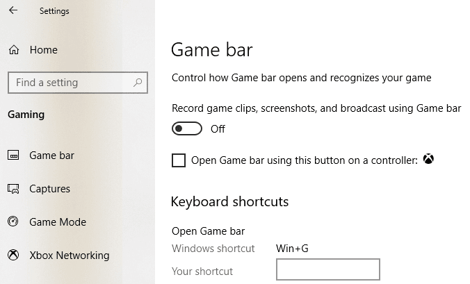 If nothing happens, that means you need to go to the Windows Store and download the Game Bar app. If it still doesn’t load, click on Start – Settings – Gaming – Game Bar and make sure it’s turned On.