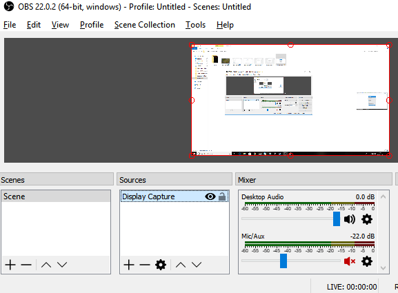You’ll now have your display appear in the OBS Broadcaster dashboard. This option is perfect if you’d like to be able to record your whole display and any programs you have open.