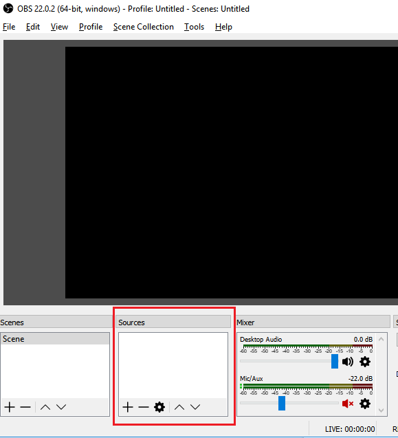 For this next step, you’ll need to add a source so that OBS Broadcaster knows what to record. This can be done with the ‘sources’ box on the OBS Broadcaster main dashboard.