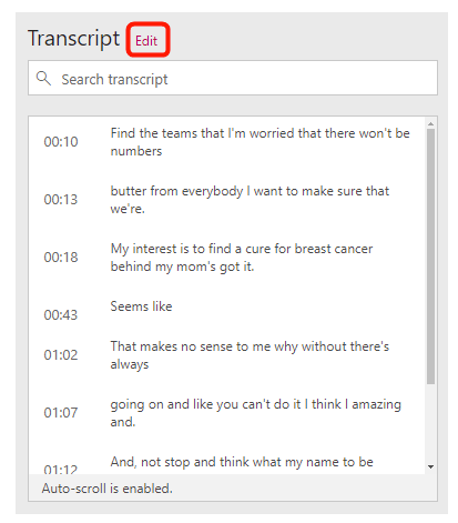 Captions will appear in the **Transcript **panel on your video’s page, and as the video owner, you can edit the transcript.