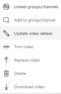 If you select the More icon, you’ll see more options including links to Update video details, Trim video, Replace video, Delete, and Download video.