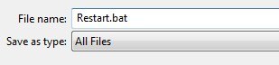 Then simply save the file with a .BAT file extension by choosing All Files for** Save as type **and add .bat to the end of the file name.