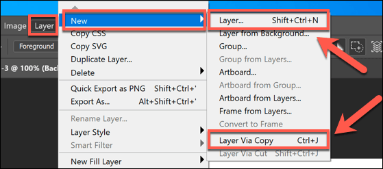 - You can then insert another image as a layer (saved in your clipboard) by clicking Layer > New > Layer Via Copy. To create an entirely blank layer, click New Layer instead.