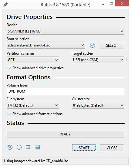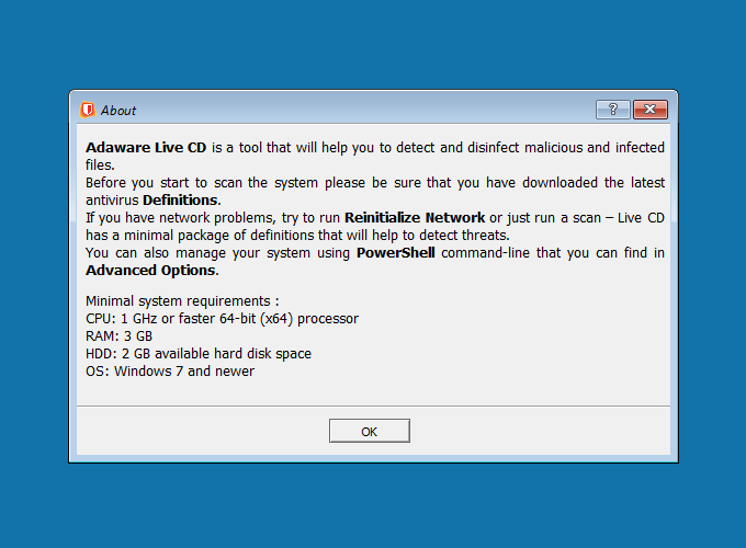 We’ll use Adaware’s Rescue USB program as an example since it works with Windows 7 and newer Windows operating systems, can update its definitions before the scan, and supports custom scans. * Visit the link above to download the ISO file. Pick the amd64 version if you have a 64-bit computer, otherwise use x86 for 32-bit. This software is over 1 GB in size, so it could take a while to download. Some of the other bootable AV programs listed above are much smaller if time is an issue.