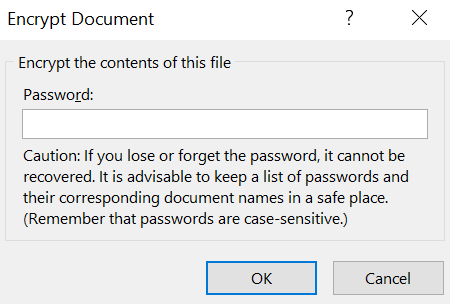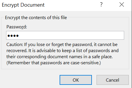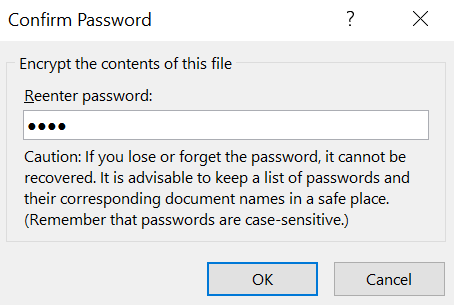 - Enter the password you want to protect your document with and click on **OK**.