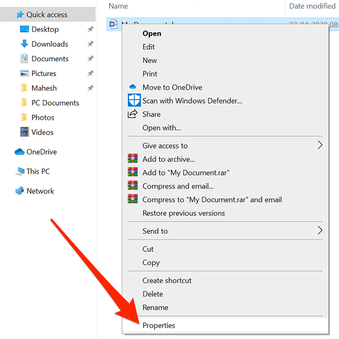 - Right-click on your file and select Properties.