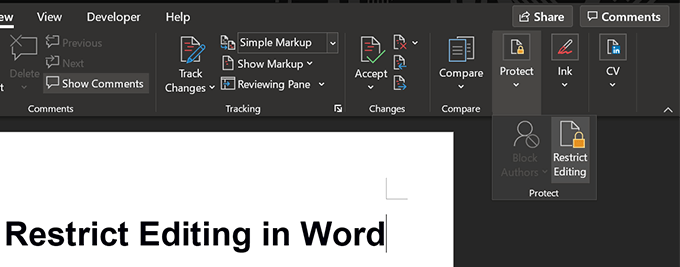 - Select Protect followed by Restrict Editing on the following screen.