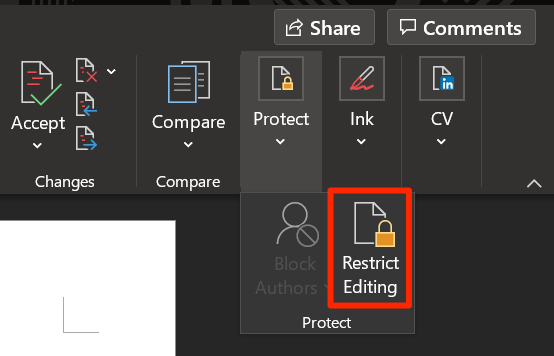 - Select the option that says Protect and choose Restrict Editing.