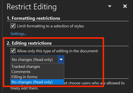 There are many ways to apply restrictions to your documents and you can use what’s appropriate for your situation. For example, you can enable formatting restrictions if you don’t want anyone to change the formatting of the document.
