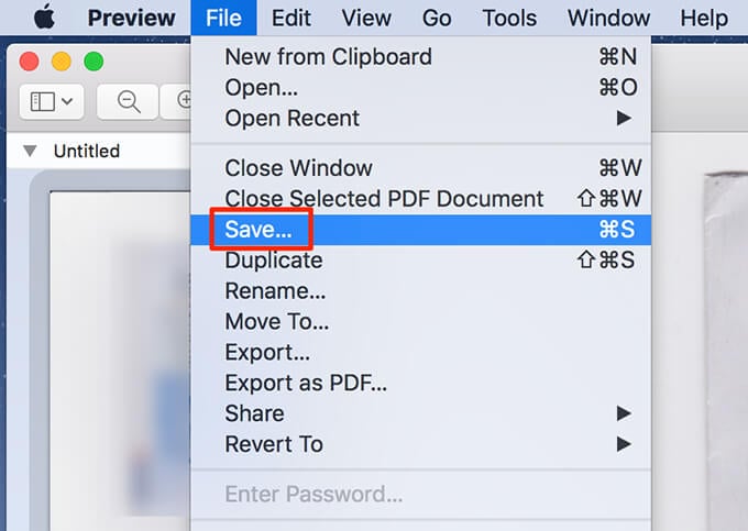 - Put the next page into the scanner, and select **Scan** in Preview. * Select the Preview window in the background to view the PDF file. * Select the **File** menu and select **Save** to save the file.