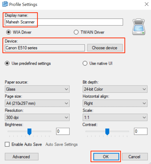 - Then, select Choose device, select your scanner from the list, and select OK.
