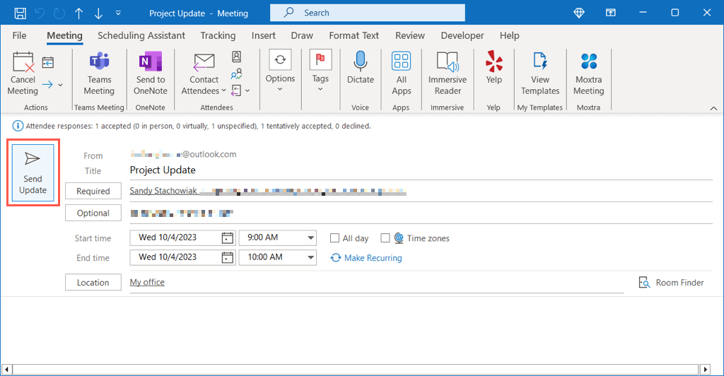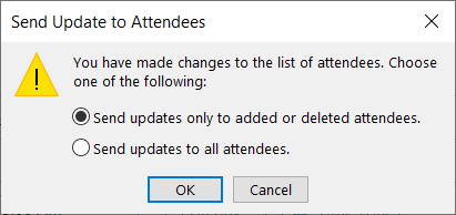 - Depending on the changes you make, you may be asked if you want to send updates to added, deleted, or all attendees. Pick an option to send your update.