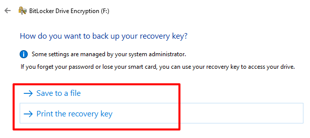 Windows will automatically generate a recovery key for the external drive. The recovery key is a spare key that unlocks your encrypted drive if you ever forget the password.