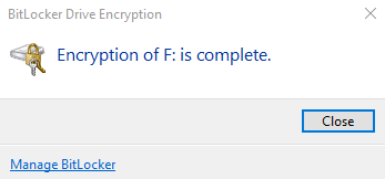 Note that your files and the drive aren’t protected until the encryption is complete. Wait until you get an “Encryption complete” success message like the one below.