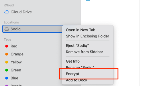 - Right-click the drive (check the Locations section) and select Encrypt or **Encrypt **.