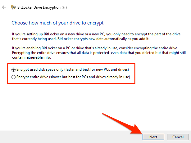 If you want to set a password on an external drive that’s already in use, select Encrypt entire drive. That’ll prompt BitLocker to encrypt all the sectors and data on the drive—even files that you deleted.