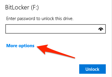 Plug the drive into your PC and wait for the BitLocker password entry window to appear on the screen. Select More options and select Enter recovery key.