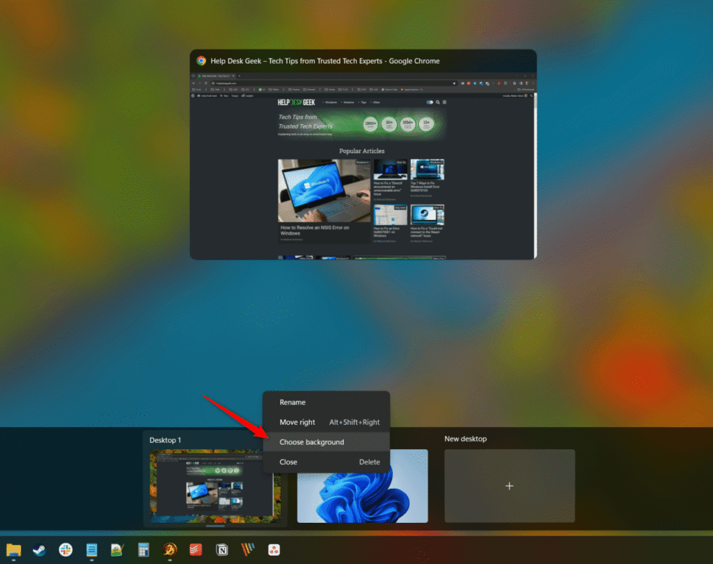 Virtual desktops in Windows 11 let you create separate workspaces, each with different customizations and running apps. Setting a different background image for each desktop gives you a quick visual reminder of which one you’re using.