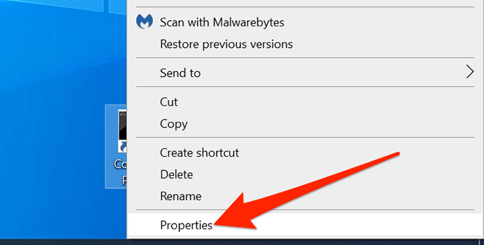 - Right-click the Command Prompt shortcut on your desktop and select Properties.