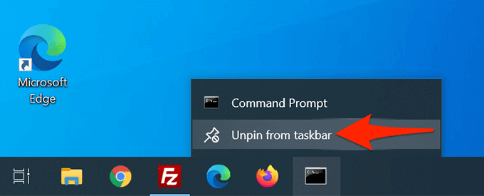 - To remove this shortcut, right-click the shortcut on the taskbar and choose **Unpin from taskbar**.
