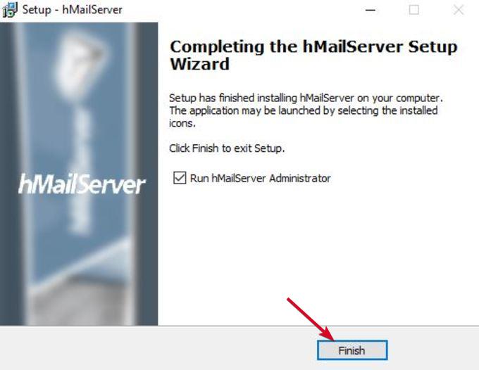 - When complete, ensure the Run hMailServer Administrator box is checked and click Finish.