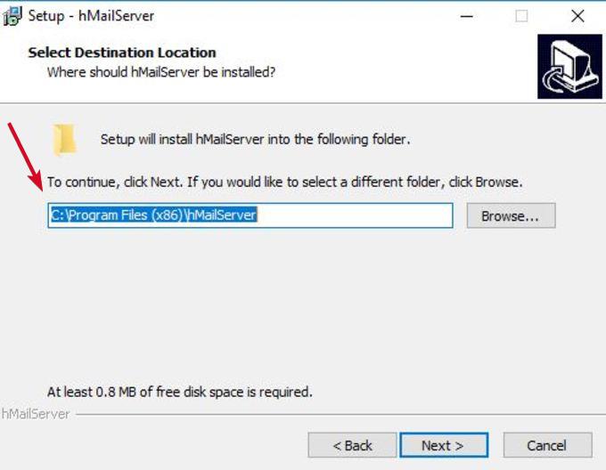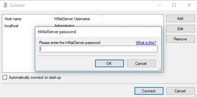 - Specify the main password that you’ll use to manage your hMailServer installation (write it down somewhere as you’ll need to use it often).