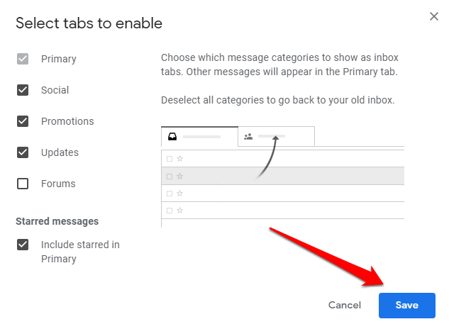 3. Choose the message categories you’d like displayed as inbox tabs.