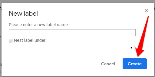 3. Enter the name of the new label, and click the blue Create button.