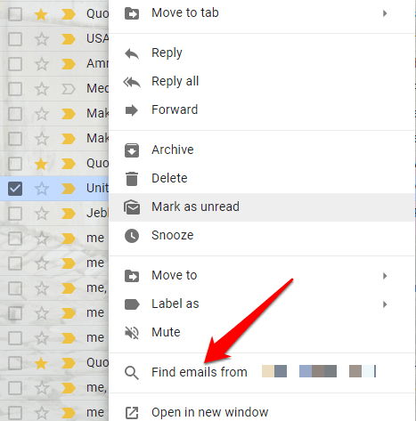 - In the new menu, click Find emails****from.