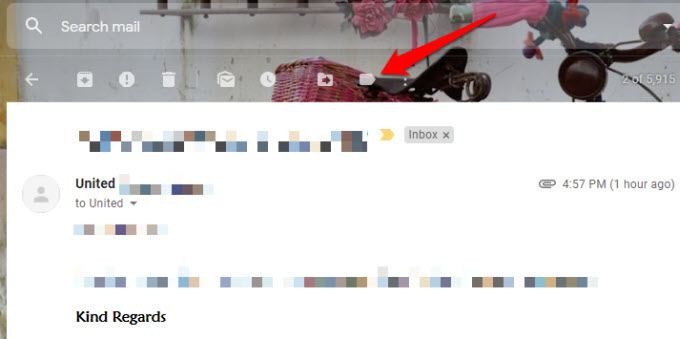 - Select an email message in your inbox to open it. You’ll see several icons just above the message, and pick the one that looks like a tag to show a list of labels.