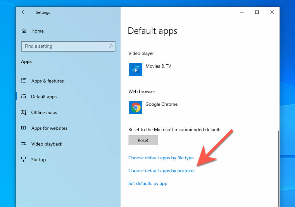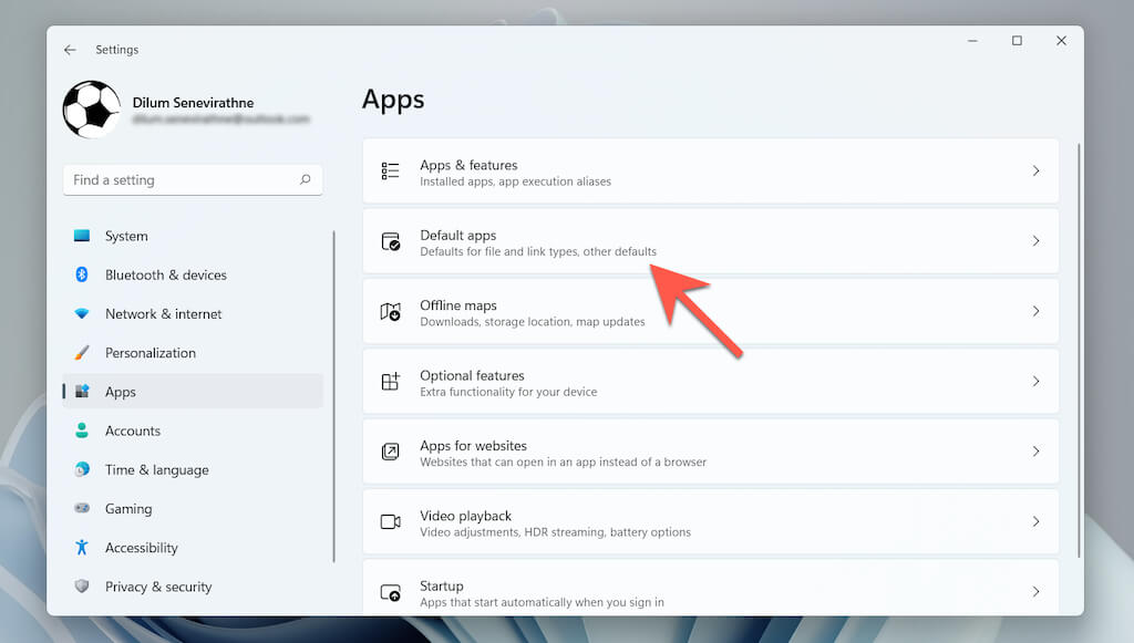 - Select Apps on the sidebar. Then, pick the category labeled Default apps.