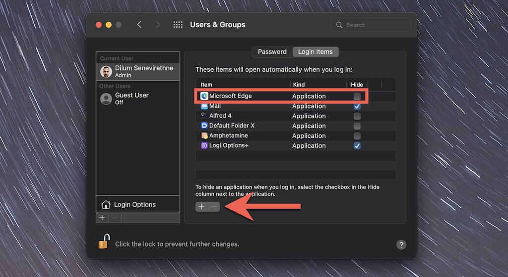 Alternatively, you can use the System Preferences app to prevent Microsoft Edge from loading at startup.