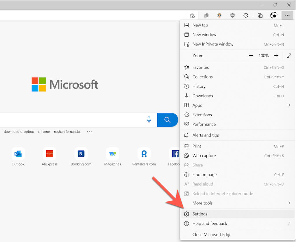 Open the Edge menu (the three dots next to the address bar) and select Settings.