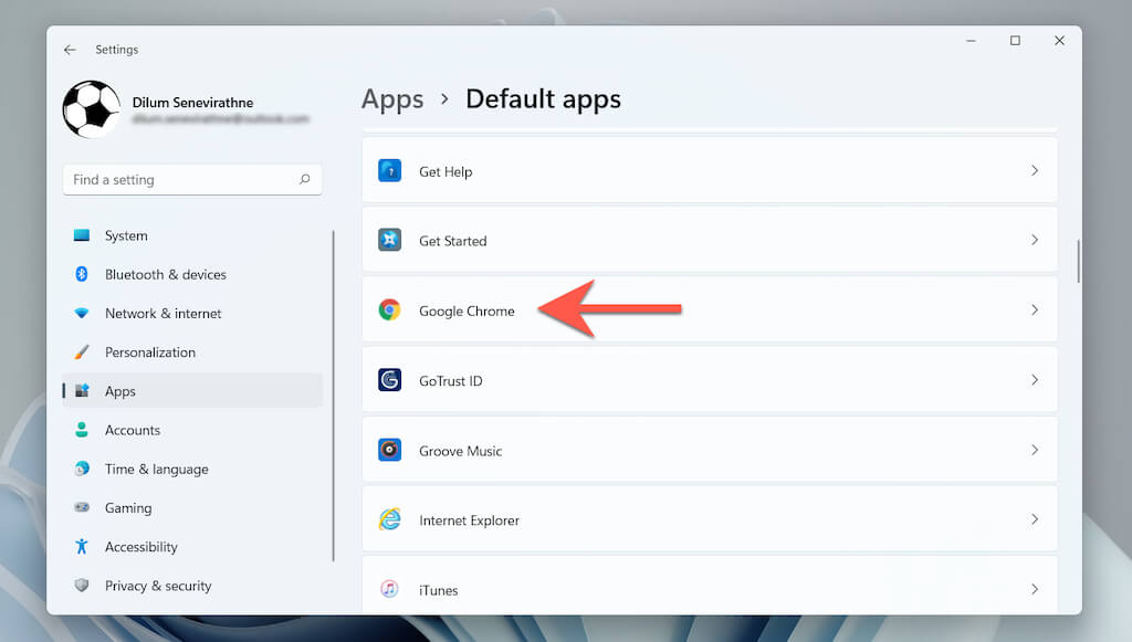- Scroll down the list and select a third-party browser (e.g., Google Chrome).