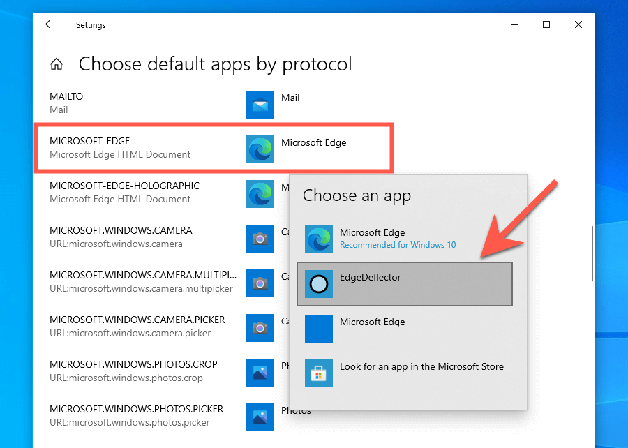 - Scroll down and select MICROSOFT-EDGE > EdgeDeflector.