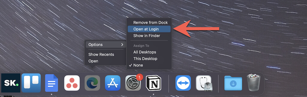 If Microsoft Edge opens automatically at startup, you can quickly disable the browser as a startup program via the Mac’s Dock. Just Control-click the Microsoft Edge icon on the Dock, select Options, and deactivate the Open at Login setting.