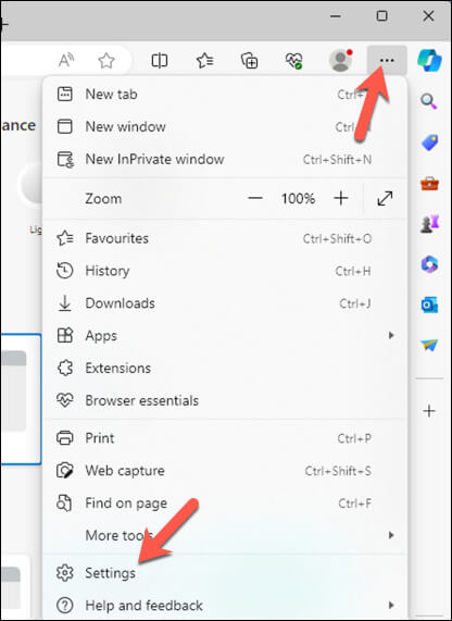 - Select Settings from the drop-down menu. Alternatively, type edge://settings/system into the Edge address bar and press Enter.