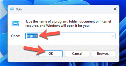 - Press Win + R to open the Run box, type regedit into Run, and press Enter to launch the Registry Editor.