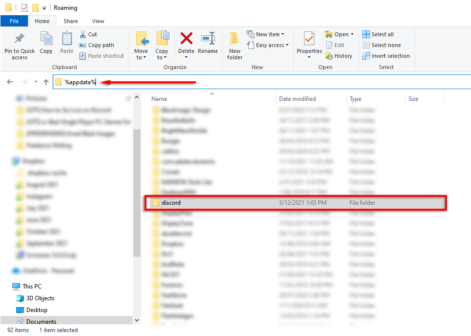 - In the address bar, type %appdata% to open the roaming folder.