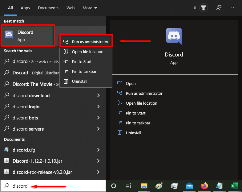 - Right-click Discord and select Run as administrator.