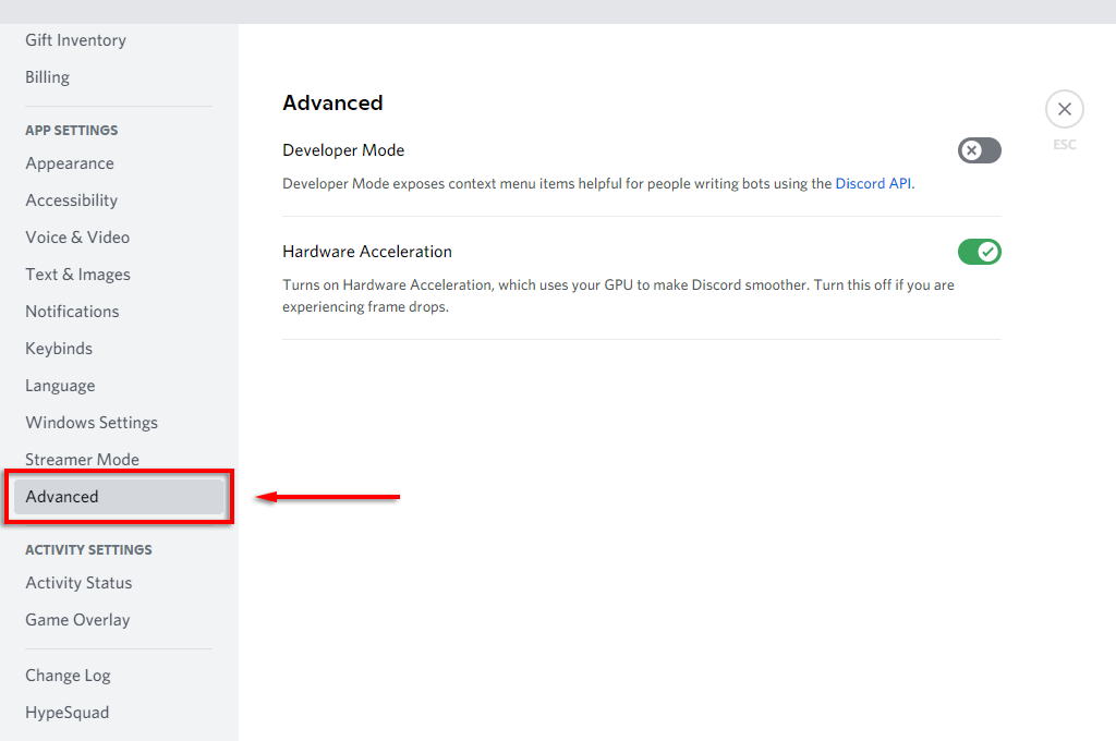 - Toggle off **Hardware Acceleration**.