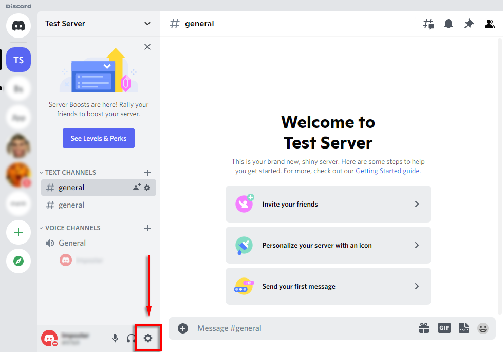 - Select Settings (the cog icon near your username).