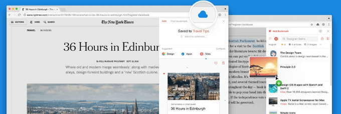 Click the Raindrop icon to add a bookmark and select which folder you want to store it in. The basic bookmarking account is free.