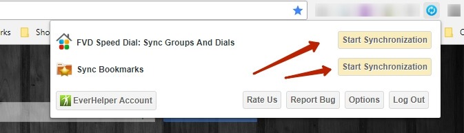 When using the browser extension, click the button to Start Synchronization.
