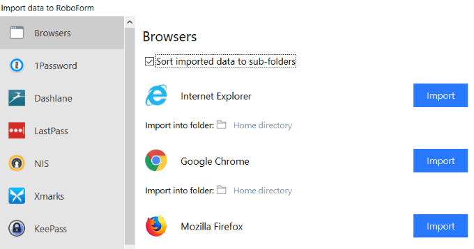 - Then click Import next to the browsers you want to import.
