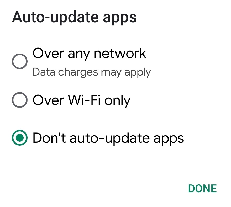 - In the pop-up box, select **Don’t auto-update apps** from the options.
