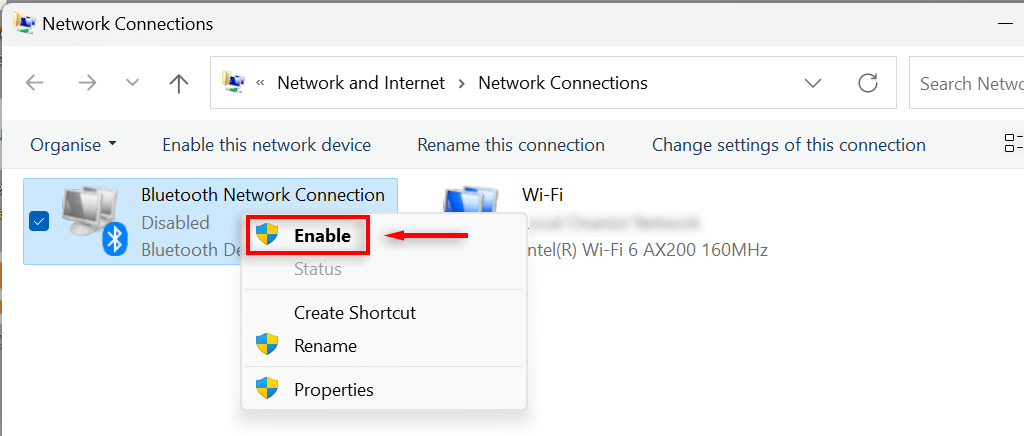 - Check if your Bluetooth device says Disabled. If it is, Right-click on Bluetooth Network Connection.