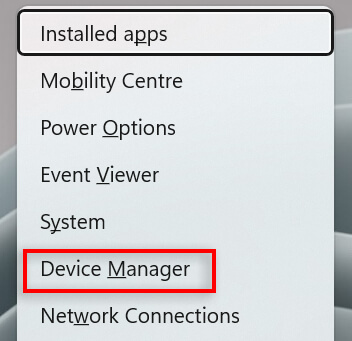 - Press the Windows key + X to open the Quick Links menu. Select Device Manager.