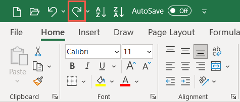 Along with Undo in Excel is the Redo command. If after you use the Undo action you want to Redo it, you can use a button or keyboard shortcut as well.
